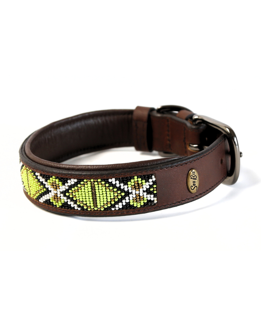 Mit dem Halsband Daisy hat Seabis Dogs etwas Außergewöhnliches entworfen - ein Halsband für besondere Anlässe. Die Verarbeitung von vielen, feinen Perlen zu einem Gesamtmuster sucht ihres gleichen. Die Sorgfalt und das Herzblut, dass vom ersten Designentwurf bis zum fertigen Produkt investiert wurde, sieht und spürt man bei diesem Halsband besonders! Daisy ist trotz der aufwändigen Verarbeitung robust und stark.